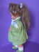 Appelgroen en citroengeel zijn de kleuren van dit lieftallige meisje. Haar kleertjes zijn niet origineel. Maar wel heel leuk. Ook haar onderbroekje is zachtgeel. Ze is in uitstekende staat en heeft een lengte van ca 40 cm. Gemerkt met het oude Bella logo: Bella de déposé in een cirkel.
